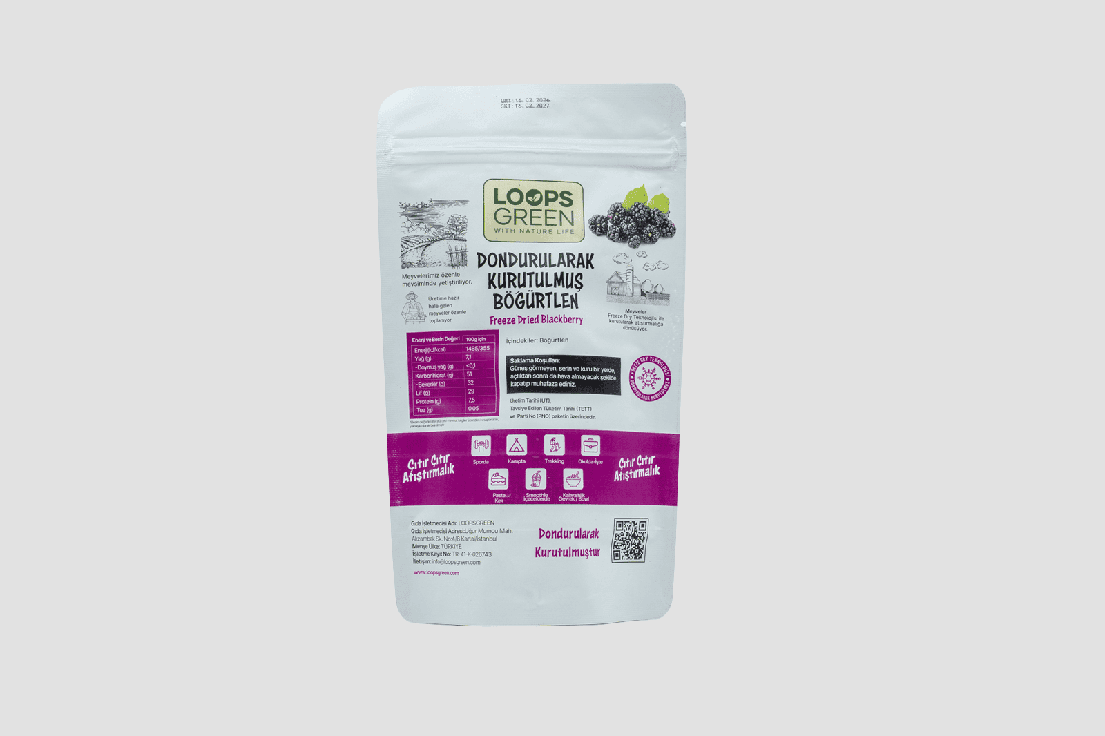 Dondurularak kurutulmuş böğürtlen. Doğal, katkısız.